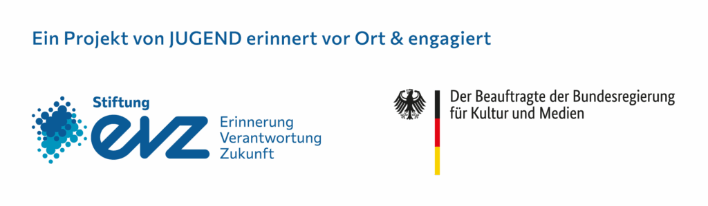 Das Projekt wird von der Stiftung EVZ und dem Beauftragten der Bundesregierung für Kultur und Medien (BKM) im Rahmen des Programms JUGEND erinnert vor Ort & engagiert gefördert.
