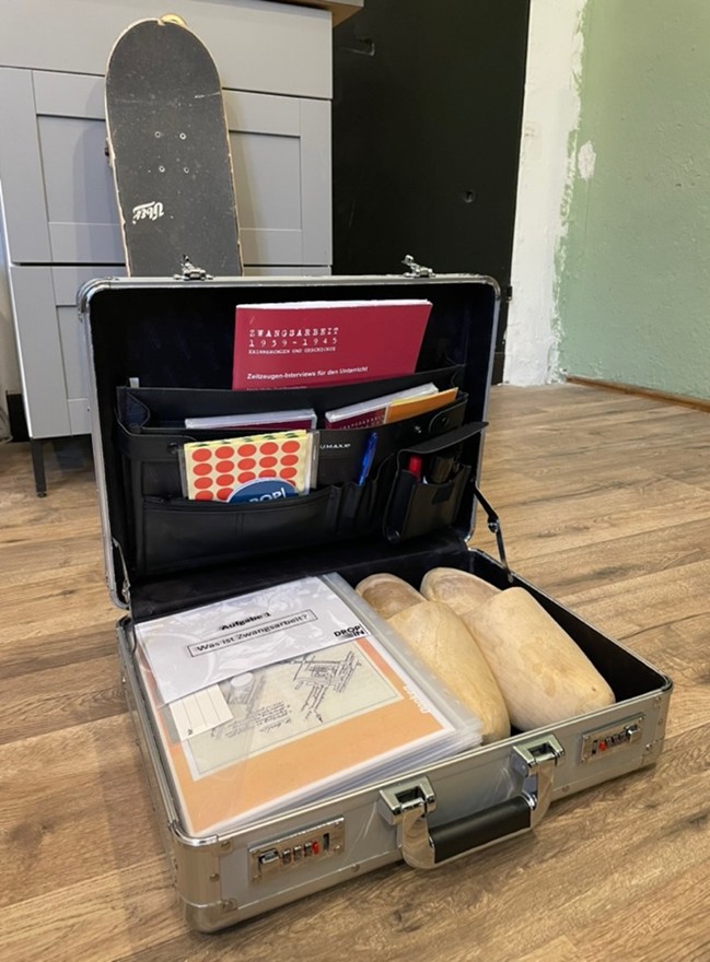 Der Koffer kann von interessierten Lehrkräften oder Bilder:innen ausgeliehen werden.